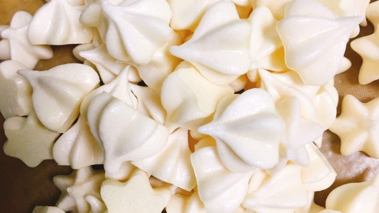 8. 溶豆我都是用烘干机做的,65度90分钟就好了不用担心受热不均匀,也不要时时刻刻的盯着,保证出来以后不会有上色的问题!烤箱是80度60到70分钟。
