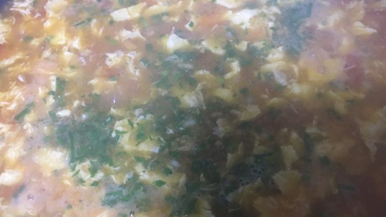 - 如果想让鸡蛋成丝状,加入蛋液后快速沿一个方向搅拌即可。如果不喜欢太酸,可以加入一点白砂糖,这样就是酸甜味。