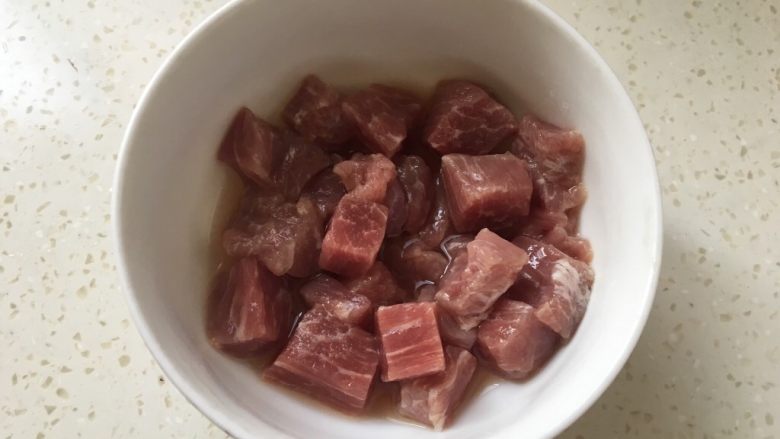 4. 莲藕去皮切成丁,泡水中加少许醋,去淀粉防氧化。
