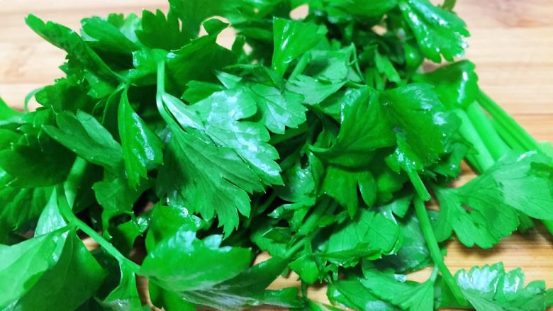 7. 芹菜放入锅中焯熟,捞出沥干水分备用