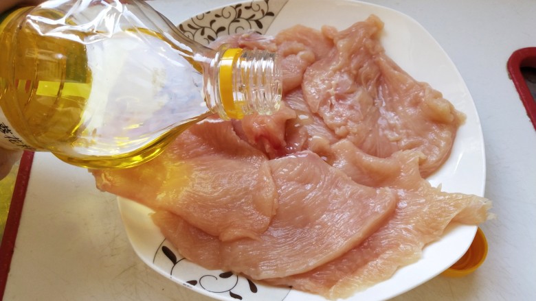 2. 把鸡胸肉从片薄,大概一块能片3层