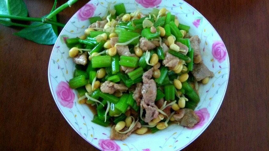 芹菜黄豆芽炒肉