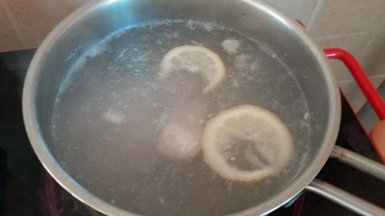 4. 加入大块里脊肉,变色捞出,洗去浮沫,倒掉水,刷干净锅。