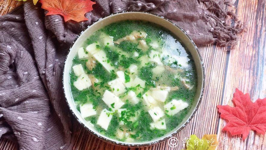 2. 豆腐改刀切小块后,水里汆烫一下去掉点豆腥气