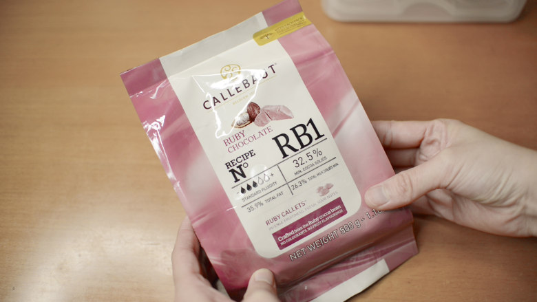 这次入手了嘉利宝新研发的红宝石巧克力,心情有点小激动呢。 因为它是纯天然的,不是白巧克力加色素! 继黑巧、牛奶巧克力、白巧之后的第四代巧克力品种! 口味是水果味的,要说像什么,比较像是奶味蔓越莓,白巧克力里加入蔓越莓粉也许可以模拟一下。