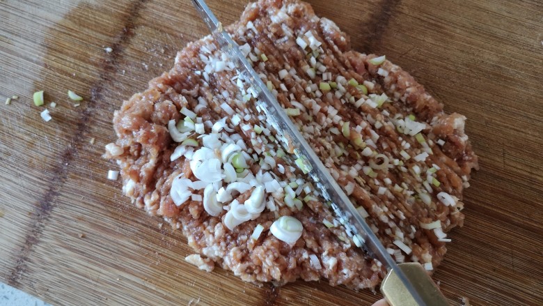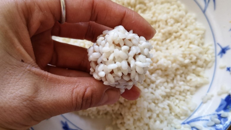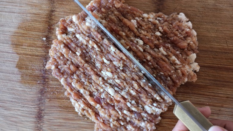 10. 手里蘸点水,将抓拌好的肉糜用手挤成肉圆。