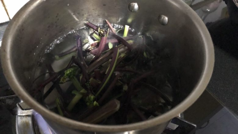 原本是楚地特产的红菜苔,现在已飞入大江南北。传统做法是炒腊肉,我就来个清淡版的吧!