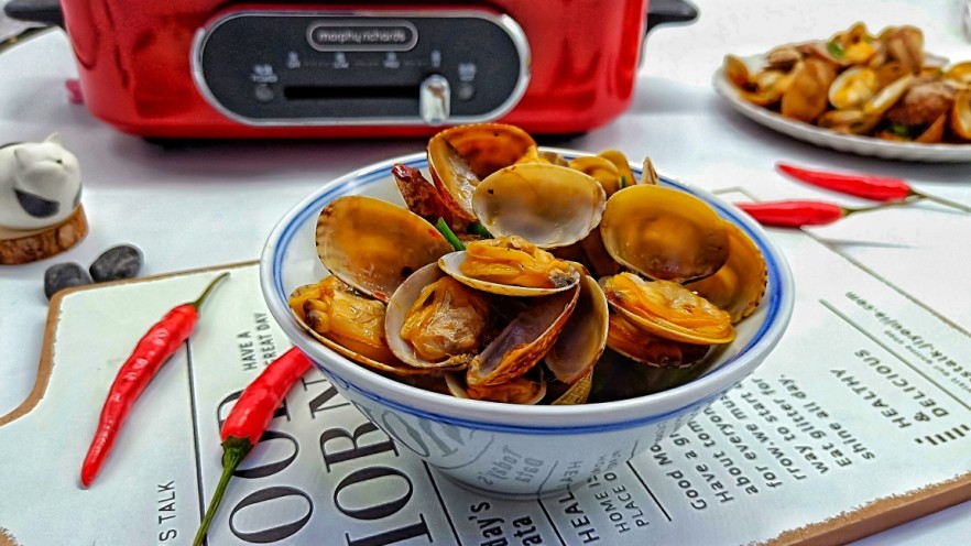 10. 开大火翻炒均匀,直到每个花蛤张开。