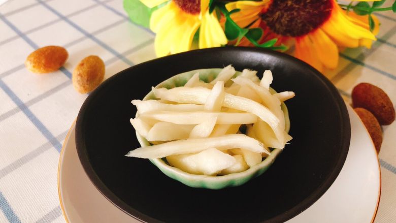 4. 腌好后,用小刀刮姜皮,干净卫生也比较健康安全。