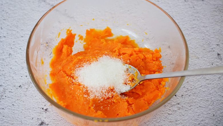 3. 把蒸熟的红薯放入容器中,用勺子压成泥