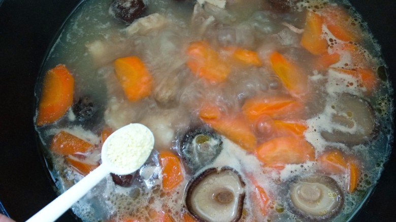 7. 煮至胡萝卜熟透,放入3小勺盐。
