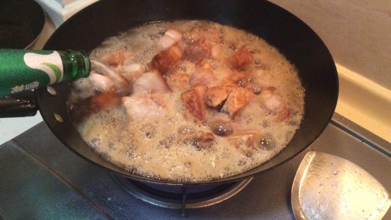 8. 煸炒至表皮金黄,这一步目的把肉自生的油煸炒出来。