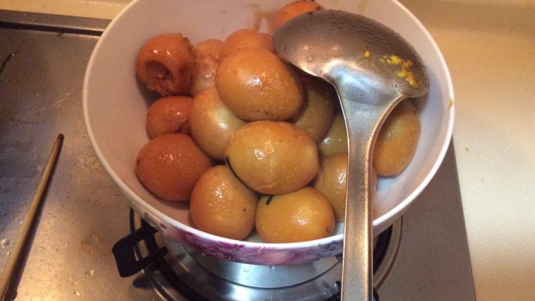 15. 把之前准备好的🥚用筷子戳下让味道更好进入