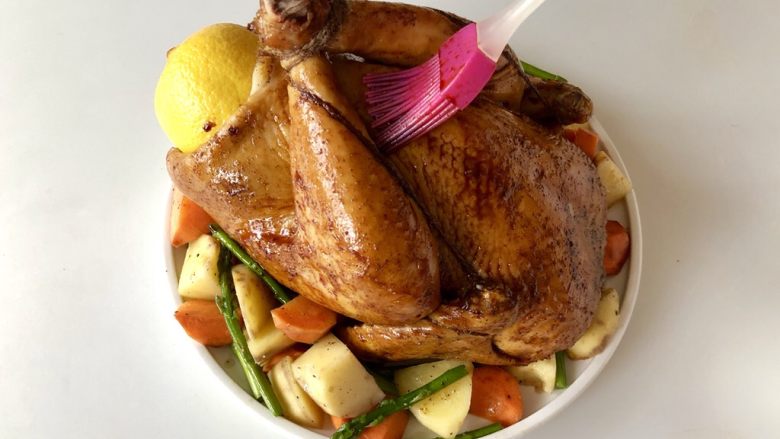 19. 香喷喷圆鼓鼓的蜜汁烤鸡就真的很好吃啊!鸡颜色均匀光泽,鲜嫩多汁表皮又很香浓,还有一股淡淡的柠檬香味,全家都很喜欢!