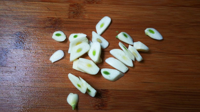 - 热锅凉油放入蒜片煎出香味,放入刀豆翻炒变色,放入三勺炸酱翻炒均匀,放入150毫升热水,盖上锅盖中火烧开,小火焖至刀豆熟透