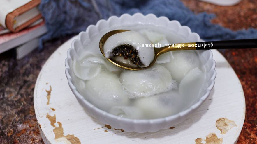 11. 所有汤圆都包好,接下来就先煮一碗来尝尝味道,锅里加水烧开,烧开后放入汤圆,汤圆煮至浮起即可