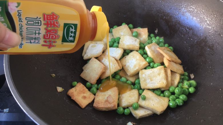 10. 放入3~4滴的鲜鸡汁,翻炒均匀。