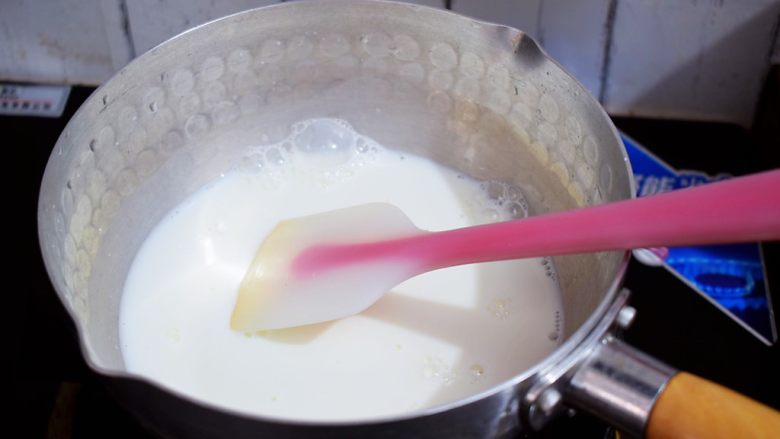 10. 再把晾凉的牛奶糊放入,搅拌即可