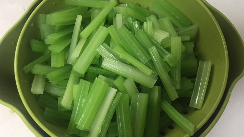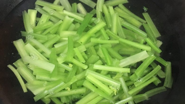 8. 水开后加入芹菜,焯水后立即过凉水