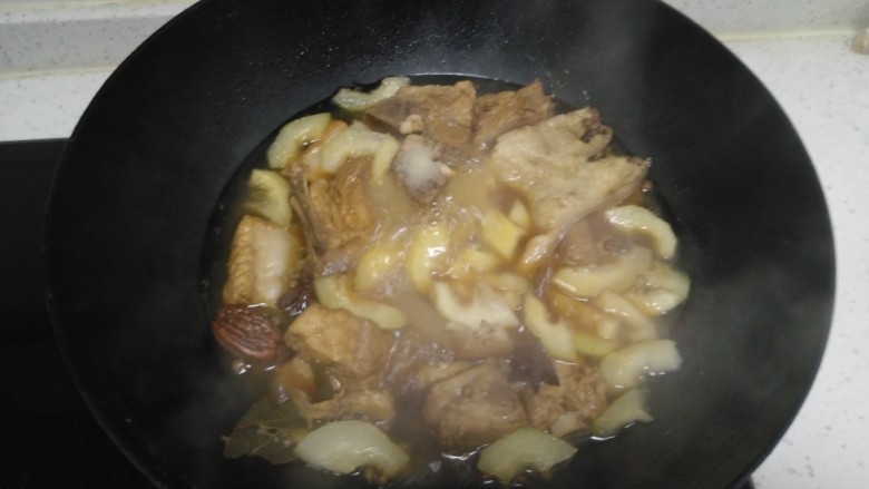 7. 大火煮开,转小火炖40分钟,加入冬瓜。