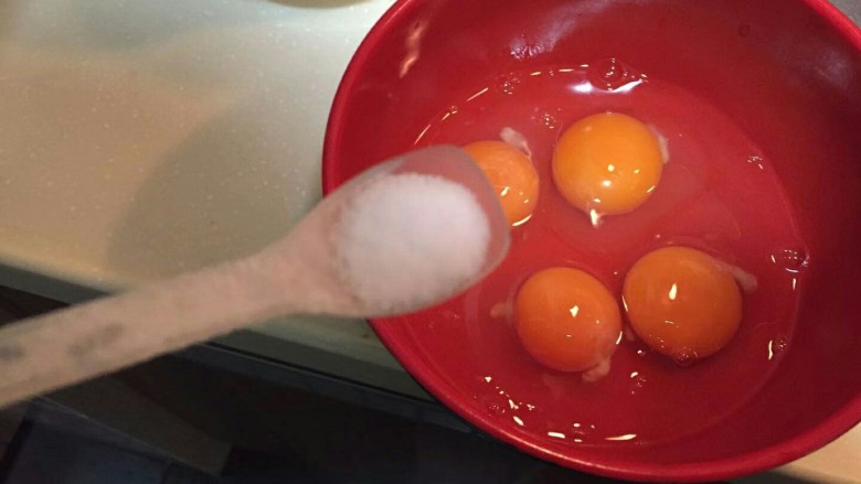 4. 老规矩,鸡蛋加入一勺盐。