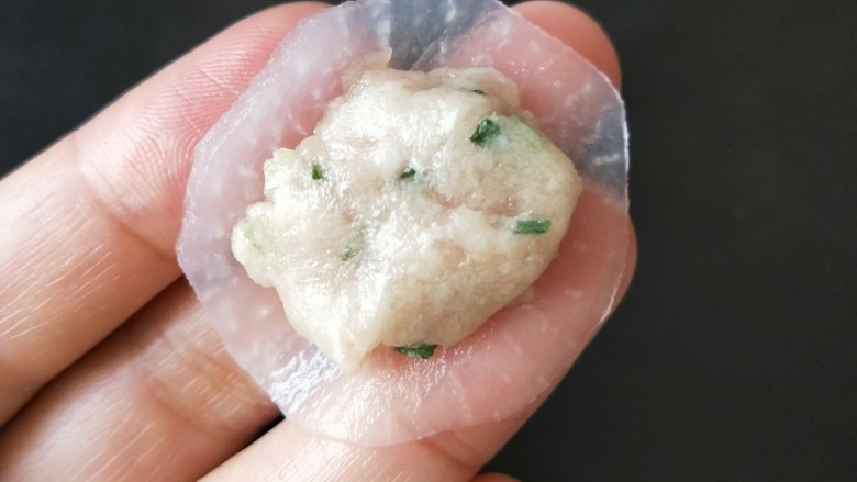 10. 取一片萝卜,放入肉馅。