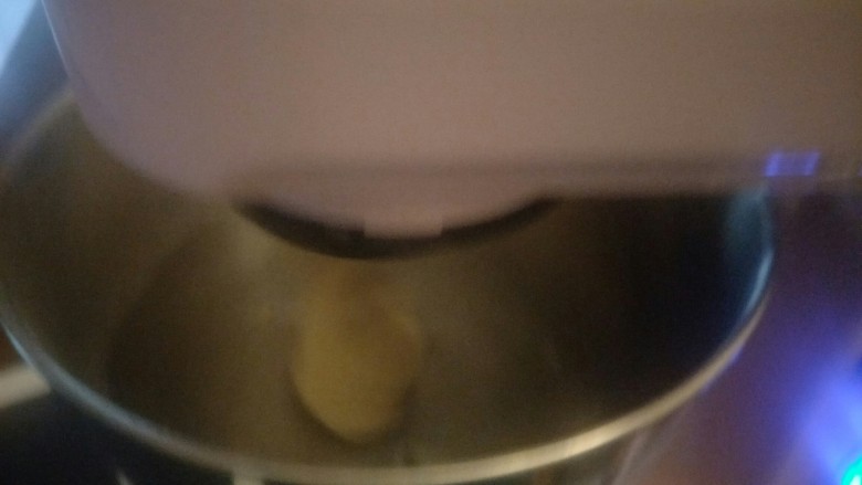 7. 大概十分钟后到扩展阶段。这个面团实在是太小了,我全程用一档。(撑开有膜开头呈锯齿状。)