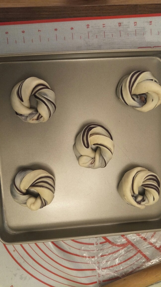 20. 擀成牛舌状的面团。拿一把锋利的小刀。