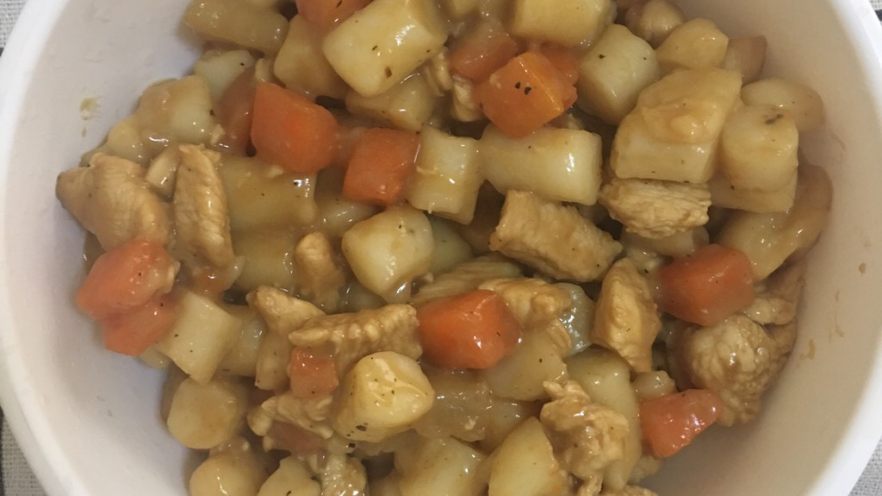 6. 6️⃣ 热锅加入腌制好的鸡胸肉粒翻炒至变色。