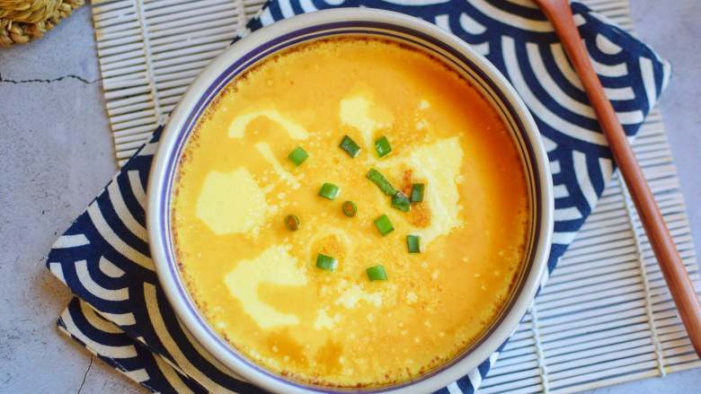 8. 蒸好后在蛋羹表面再加一勺生抽