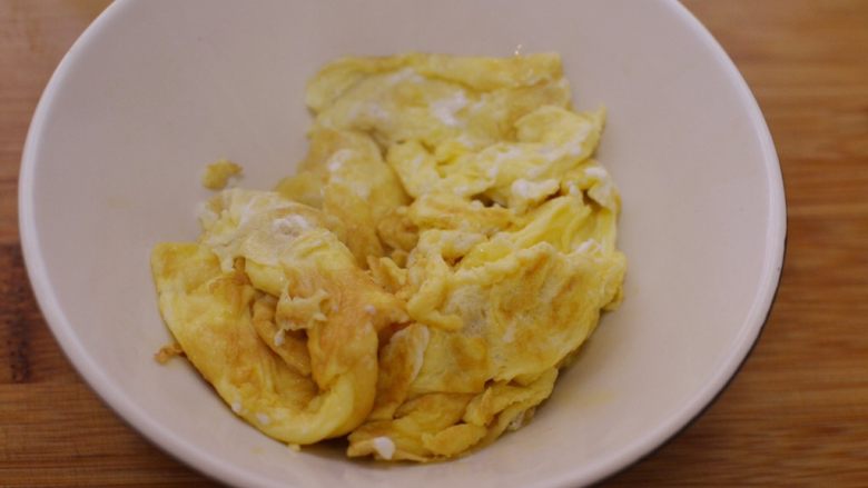 12. 锅中油烧热,大火倒入蛋液,炒至完全凝固。