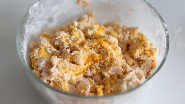 3. 用筷子搅成絮状,再酌情加入面粉。