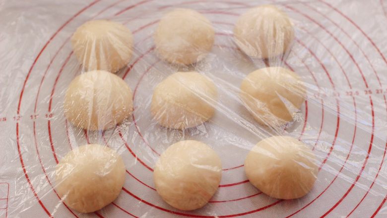 8. 发酵好的面团取出后,排气揉匀,然后分成9份后静置松弛15分钟。