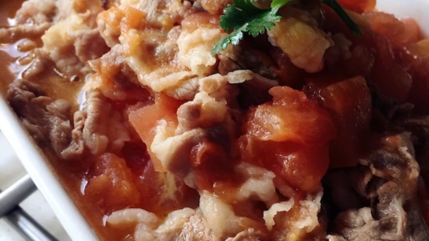 昨天吃火锅剩下点牛肉片,正好用来做番茄肥牛。