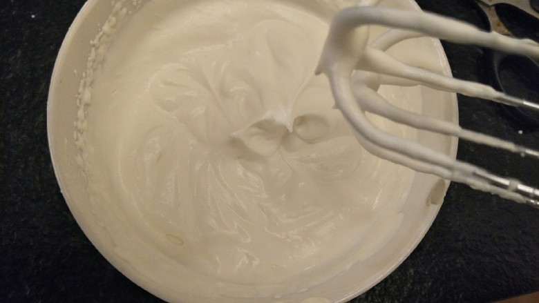 10. 打到干性发泡即可。提起打蛋器有直立的小尖角。