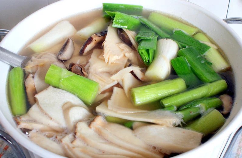 9. 加上杏鲍菇,盐巴调味,再煮个3分钟即可上桌。