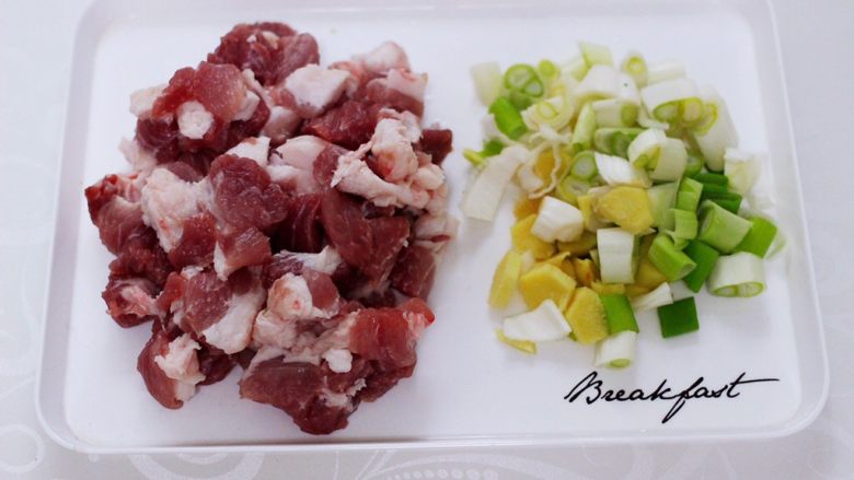 3. 把切好的五花肉和葱姜放入东菱绞肉机里。