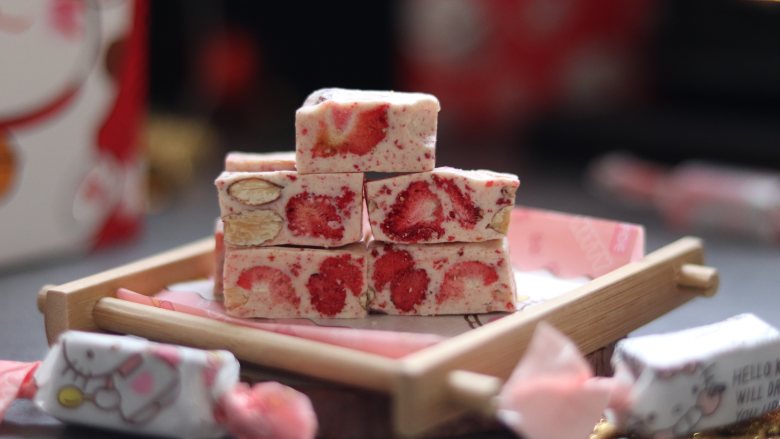草莓脆做的牛轧糖,酸酸甜甜十分美味。