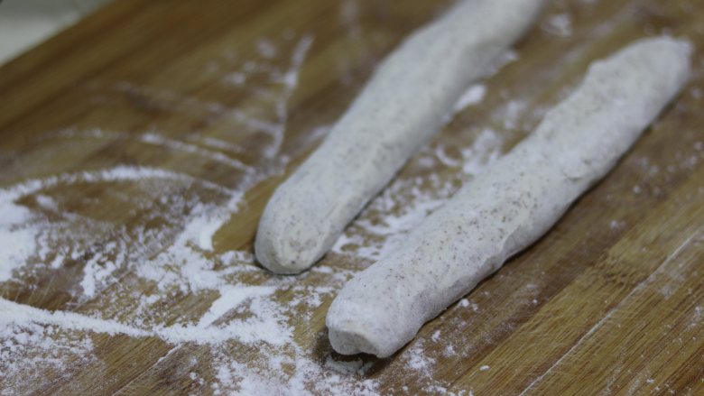 7. 醒好的面取一部分搓成长条,切分好均匀的小面团,并擀皮。