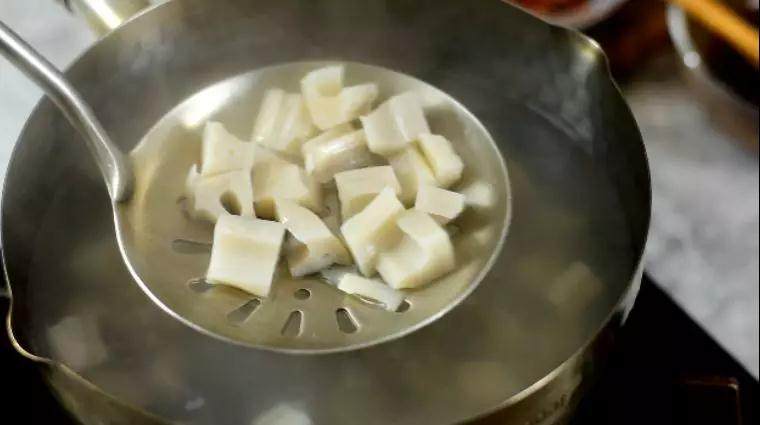 3. 将藕丁入开水焯水,3分钟后捞出备用