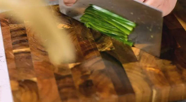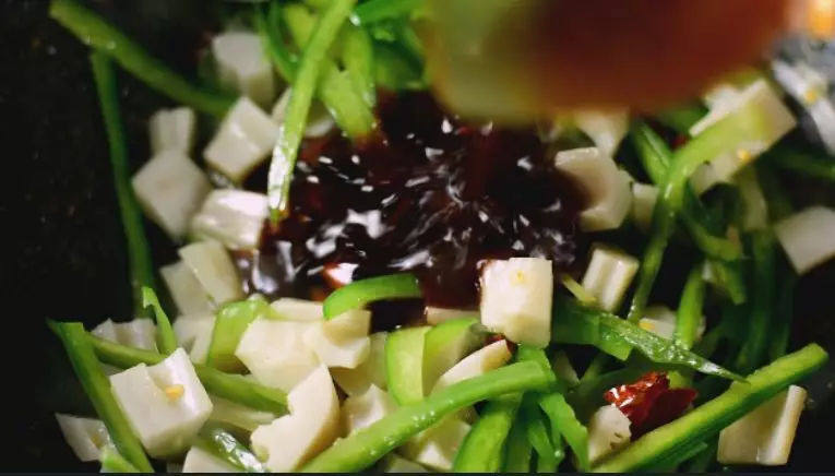 6. 起油锅,放入姜丝、干辣椒,爆香