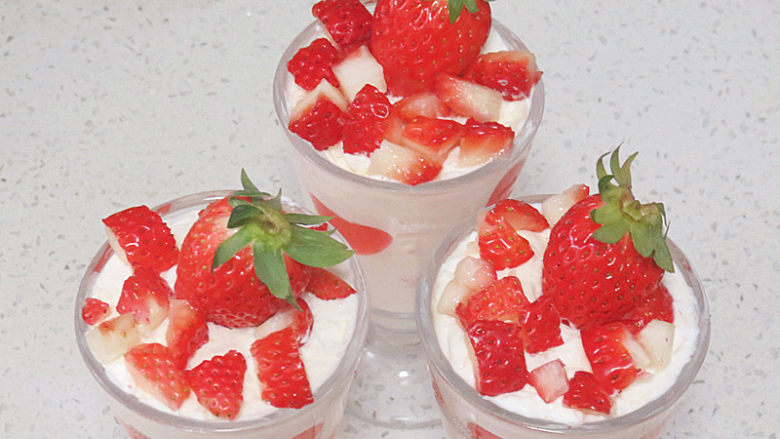 10. 酸奶慕斯糊装入裱花袋中,剪大口,挤入杯中