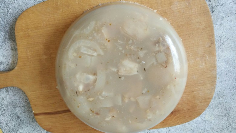 - ③等煮好的猪蹄汤,冷冻之后再把油刮掉,再烧开油脂就会去掉