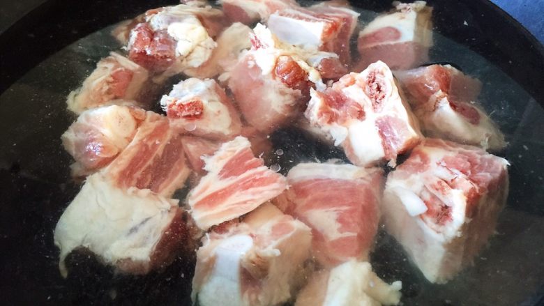 12. 添水没过排骨(最好多一些),大火烧开转中火炖至排骨8分熟
