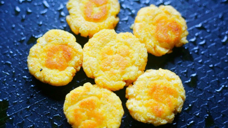 8. 平底锅刷一层油,放入米粉球小火慢煎。