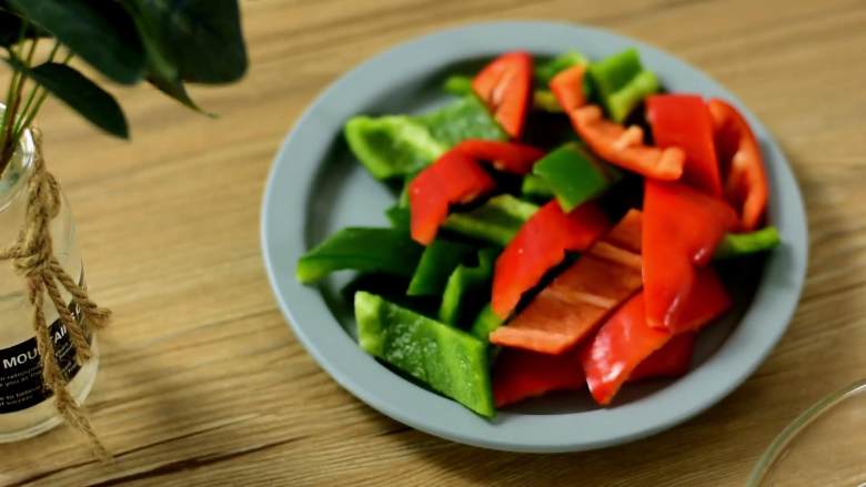 11. 开盖,大火至汤汁浓稠加入青红椒和少许盐调味即可。