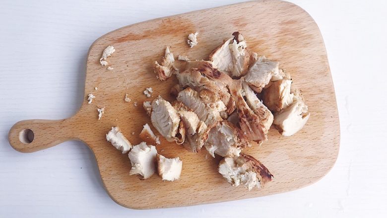 5. 煎好的鸡胸切成小块