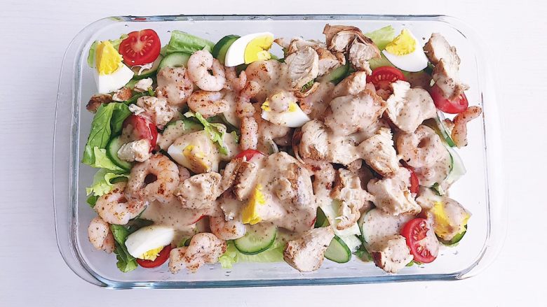 17. 满满一大碗沙拉,看着就食欲大增,谁说减肥只能吃菜!虾仁鸡胸肉脂肪含量低,是减脂锻炼人群首选