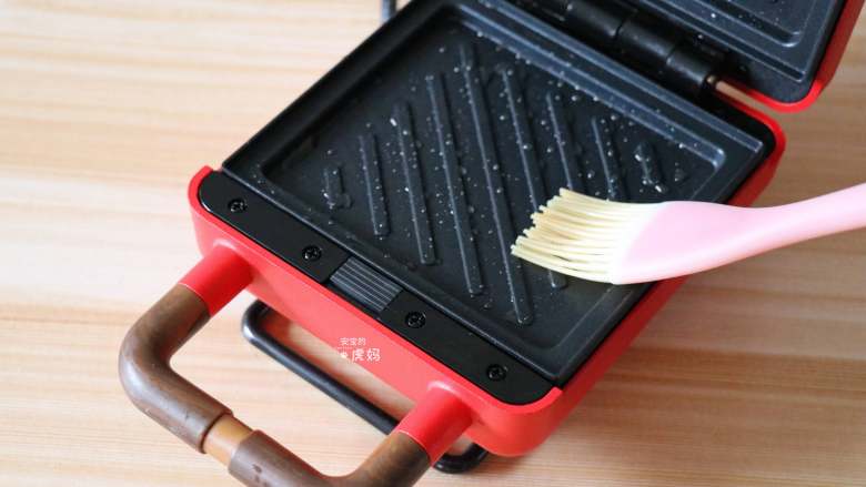 8. 灯灭即预热好,上下烤盘都刷少许玉米油;