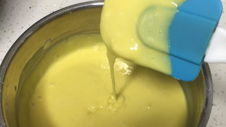 12. 继续翻拌50次左右,蛋糕糊就完成了。